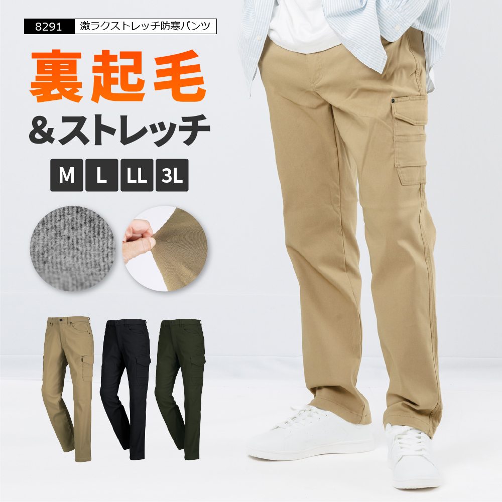 暖かい裏起毛と抜群のストレッチ性で動きやすい!秋冬の作業・普段使いに最適なスッキリシルエットのカーゴパンツ。スマホポケット付き。